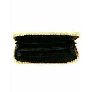 Trendy and fun ivory white wallet with a pineapple on it. Zip top closure, inside six credit card slots on both inside walls, center zipper coin slot, room on both sides for checkbook and more. Easy wipe clean vinyl, the look of leather. Black interior. 8" long x 4" tall. Brand new with tag.