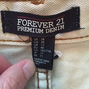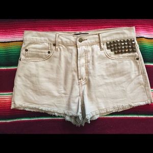 Super cool denim shorts from Forever 21! They have a studded detail above the left pocket and a cut off style hem. There is no zipper on the crotch...they are button to close shorts! They fit high waisted. They look so cute on!