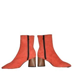 $575 RAG & BONE Fei Ankle Boot SUEDE RED FLARED BLOCK HEEL SOCK 38 (DC11)