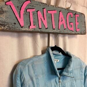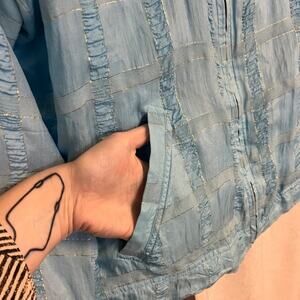 5/$75 Vintage 1980s Baby Blue and Gold Thread 100% Silk Oversized Bomber Jacket