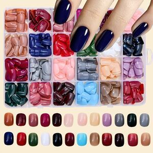 576pcs Pure Color Press-On Nails Set - Mixed Color System Short Square