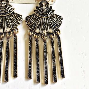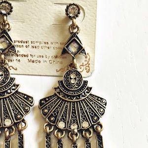❗️Brand New With Tags❗️Never Worn! These immaculate earrings are so intricately designed. Delicate detailing, white crystal accents & golden hardware make up these beauties. Add the perfect finishing touch to your wardrobe by wearing these Treasured Royalty Earrings. Truly eye-catching beauties & one of a kind additions to add to your jewelry collection:)❗️Depending on lighting the color can look lighter or darker:)❗️