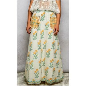 Adorable boho chic chiffon maxi skirt. Get noticed in these fun & vibrant colors. So light & airy. I feel like a lil princess skipping around. The inside lining measures 26", the skirt itself measures 35". I highly recommend wearing with a slip since material is light. Elastic waistline.