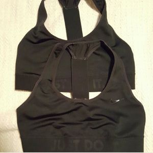 2 nike sports bras available to bundle. Both are Small black with racerback/t-strap "elastika" style. See model photo for fit. Exact details seen in item photos. Offers welcome! If you are wanting both, let me know, since it can be weird about adding 2 Smalls to a bundle. (You will have to select small #1 and #2).