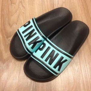 Brand new! VS PINK SLIDES SANDALS SLIPPERS S 5/6! Sold out online and in stores! These slides were in high demand and I was only able to get one of these in the Blue color in a size small!