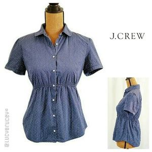 Cute J. Crew blouse, high cinched waist, button down, rounded collar, 100% cotton, in excellent condition.