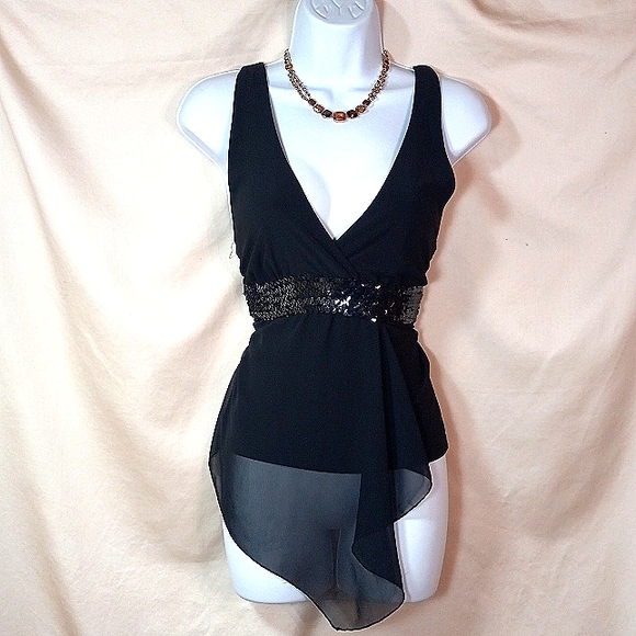 Beautiful Boss Lady Black w/ Crisscross V Neck Sequence Waistline Soo Cute Perfect For The Party ,Date Nite ,Girls Nite Out, Easy Care Wrinkle Free,In Perfect Condition.