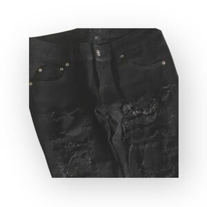LF Carmar ❉ Skinny Shredded Rips Stretch Jeans ❉ Lace Patches ❉ Jet Black ❉ 25 ❉