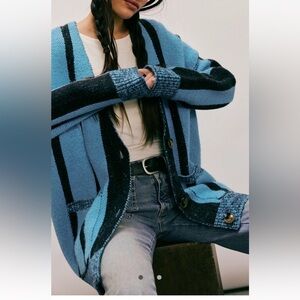 Free People turquoise & blues Fringe Cardigan S