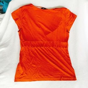 So cute orange shirt from H&M never worn, no tags. Details on the faux wrap chest and sleeves make this shirt a great fall option. Wear with jeans or slacks for work.