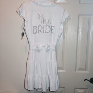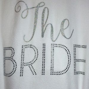 New with tags. Still in manufacturer packaging. The perfect gift! Size M. Luscious white terry robe. Ties in front. Side pockets. Adorable glitter and rhinestones spell out 'The Bride' on the back. 75 cotton/25 poly. Price is firm. No trades. I will no longer respond to offers through the comment section so please use the offer button thanks so much! ❤️