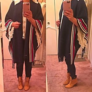 Featuring striped details and fringe hemline. Cotton Blend. Medium weight and perfect for fall or winter.