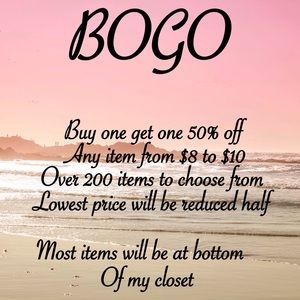 BUNDLE BUNDLE BUNDLE!!!!!! Lowest price will be reduced half. All items are NWOT 's. Let me know which items and I will make you a bundle for you. Get 4 items 2 will be reduced half and so on.