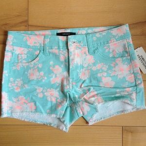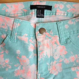 Forever 21 mint denim shorts w/ coral floral print