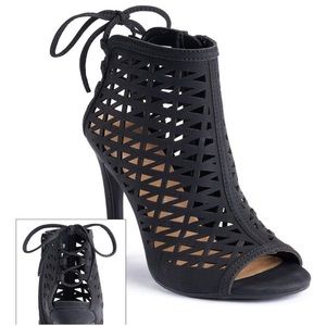 🎉HP🎉NWT LC LAUREN CONRAD Black faux suede lace up back heeled peep toe booties instantly transform any look from a dress to jeans and a tank!