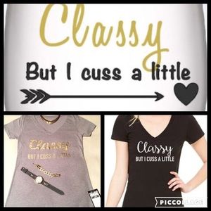 Are you classy, but cuss just a little? Nothing wrong with that! Get this latest graphic mood tee & show it! Classic fitted black v-neck with gold lettering! Get yours today! Ready to ship! 📦 Also avail in heather gray with gold lettering & white with gold lettering! Please check the measurements prior to purchasing!