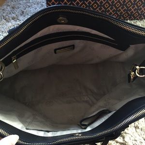 Large Tory Burch Robinson double zip tote in great condition. Comes with removable strap and gift box. Small stain inside (please see last picture) NO trades! Also listed on mercarii for cheaper.