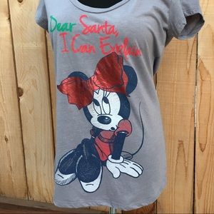 Disney's Minnie Mouse "Dear Santa, I Can Explain" t-shirt. Content is 60% Cotton & 40% Polyester. Pre-washed but never worn. Two sizes: S = pit to pit 15" & length 25.5" and the XL = pit to pit 18" & length is 27" long. In excellent like new condition. NO spots or holes. Price cut was $20.