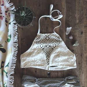 White Lace Halter Swim Top
