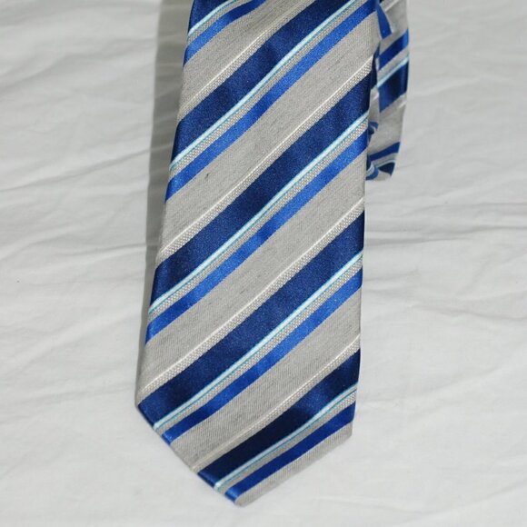 58” Mens Geoffrey Beene Stiped Blue Gray Tie GUC