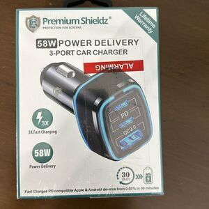 58 Watt Power Delivery 3 Port car Charger with 3x Faster Charging Capability