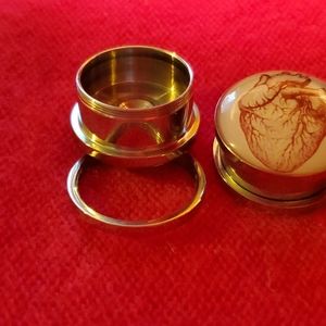 Anatomical heart plugs. Steel ring screw off backings. Some rust spots on inside backs! (pics)