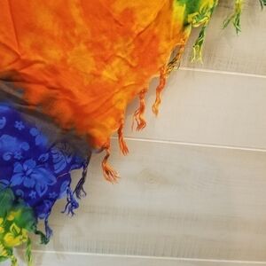 Rainbow Hawaiian Hibiscus Swimsuit Cover Up Wrap Skirt Dress Fringe