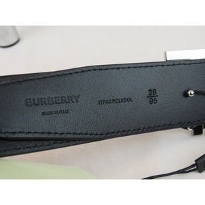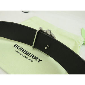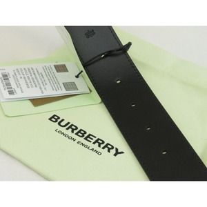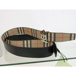 $580 BURBERRY TB 35 BEIGE CHECK BLACK LEATHER REVERSIBLE LOGO BUCKLE BELT 95 38