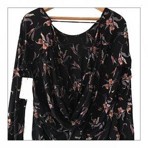 ✨Free People Elsa Bouse✨Free People floral print jersey top with sensual open back, featuring drapey wrapped fabric suspended by slim interlocking strings✨Long raglan sleeves and ballet neck✨50% Cotton, 50% Modal✨Approx Measurements: {Medium}Bust-21.5”/ Length-21”✨NWT✨Sizes Med & Large✨
