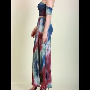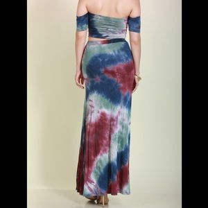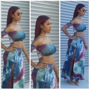 Two piece tie dye set. Crop top with pull on skirt with two front slits. 95% polyester 5% spandex. True to size 🚨price firm unless bundled