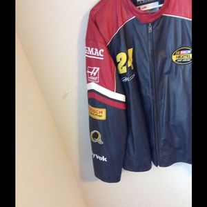 Authentic genuine leather jacket with multi NASCAR patches throughout! Functioning pockets, zip up front and fully lined interior for warmth. 30" long 25" sleeve Moto Bomber Sports Race Car Open to offers!