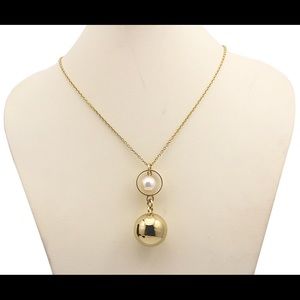 Symbol of protected, pure eternal love with completeness and acceptance in perfect harmony. An elegant design with a timeless appeal. A shimmering enhanced faux pearl artfully cradled within a graceful 18K gold plated circle ring, connected to an adorning 18K gold plated ball, creating a glamorous pendant. Pendant glides on an 18K gold plated stainless steel link chain.