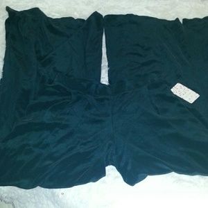 Super gorgeous 100% silk wide leg pants. In a dark, teal brushed silk that is so soft. I like these because they can be worn year round. Add a sequined white crop top or lace crop top and strappy heels for a night out on the town. Or rock them boho style. BRAND NEW, NEVER WORN WITH ORIGINAL TAGS