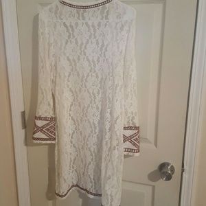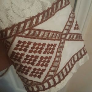 White gimmicks over piece with beautiful stiching on the arms. I wore it twice and still in new condition.