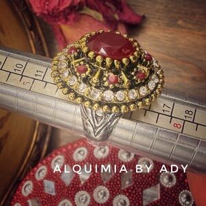 Crystal Jewel tone in Dimonds pave and red ruby center, engraved