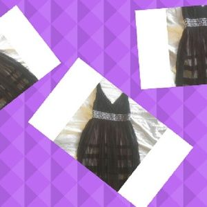 It a black dress with a designs about knee to mid thigh length depend his tall are you brand new never wear been in my close for about 3 months