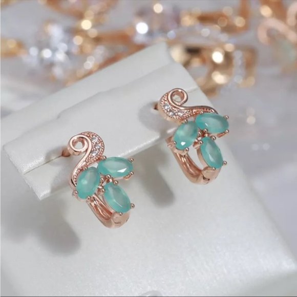 585 Rose Gold Plated Mint Green Oval Zircon Earrings