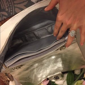 @maalma it is silver :) yes the strap that is shown doubled can pull out long to cross body! That's how I often wear my flaps