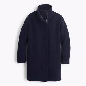 J.CREW STADIUM CLOTH COCOON COAT BRAND NEW with TAGS RETAIL FOR $350 Size: Regular 2 Color: Navy 100% Authentic! PRODUCT DETAILS Our coat crush: a cozy cocoon silhouette in stadium-cloth wool made especially for us by Italy's Nello Gori mill. Inspired by the fabric used in old-school stadium blankets, it adds warmth without the bulk Italian wool/nylon. Zip closure. Pockets. Lined. Dry clean. Import. SIZE & FIT DETAILS Boxy fit. Body length: 34 1/4". Sleeve length: 33 3/4". Hits at midthigh.