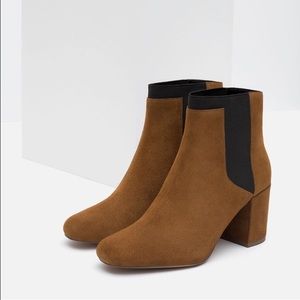 Brand new with tags and original box, never worn. Blue velvet high heel ankle boots, zip details on the front and bows on the upper, gold-toned hardware, rounded toe, heel height 3.9". 100% Polyester. ZARA Eur 37/US 6.5. Next day shipment!
