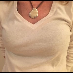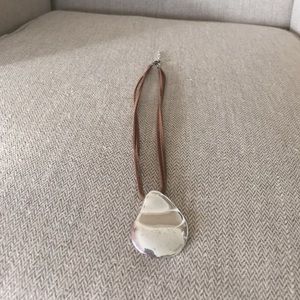 Stunning artisan-designed original stunning silver glimmering on leather necklace! It's a well-crafted heavy Silver Pendent. It is not solid silver. Fabulous. Pre-loved with some evident ware. Long life ahead!