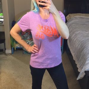 Super cute great condition Under Armour workout shirt with heat gear size small purple pink color with neon orange detail