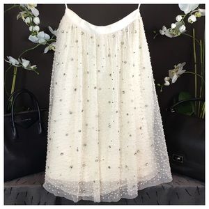 Alice + Olivia Embellished Tulle Cream Skirt