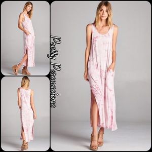 LAST ONE‼️Tie Dyed Pink Blush Slit Hem Maxi Dress
