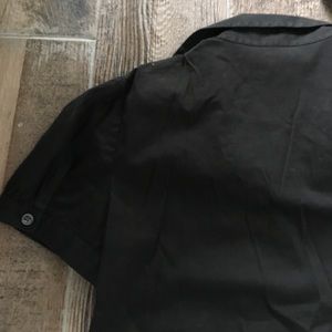 Theory black short sleeve button down shirt. Cute pleating details and flare bottom. Fit is AMAZING. I sadly cannot fit into this, but it is flattering on just about anyone :) open to offers! Fits size small