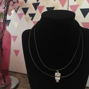 Cute double cord necklace with owl charm ๐ค measures 15 in. Expands to 17 in.