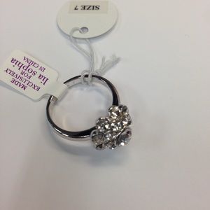 This forget-me-not flower is blooming with sparkling cut crystal. Set in polished silver, this is the perfect everyday piece and makes for a perfect party gift. Size 7