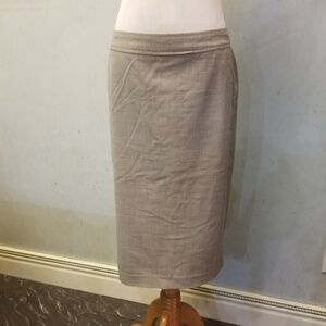 Banana Republic wool skirt with a faux leather detailed pockets shown in pic2, has a slit in the front. 53% wool 42% polyester 5& other fabrics. Lining is 100% acetate in perfect condition like new