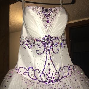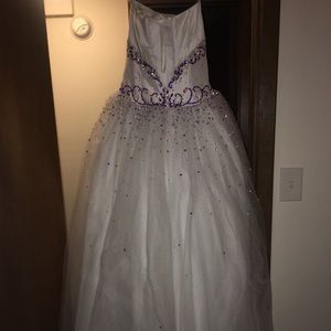 White corset ball gown with purple detailing, size 4, worn once at my senior prom (2015), originally 500, make me an offer!