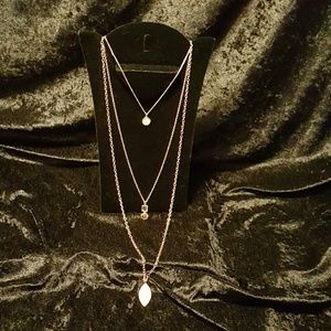 New in box! Blush necklace by Premier Designs! Rose gold tone, crystal, resin necklace! Can be worn all together or each strand separately! 16" necklace with 4" removable extension, lobster clasp! Two removable strands, one 26" with resin pink charm enhancer, and one 36" with pearlescent white charm enhancer! Delicate but darling! Original box but original sticker removed. Reasonable offers considered